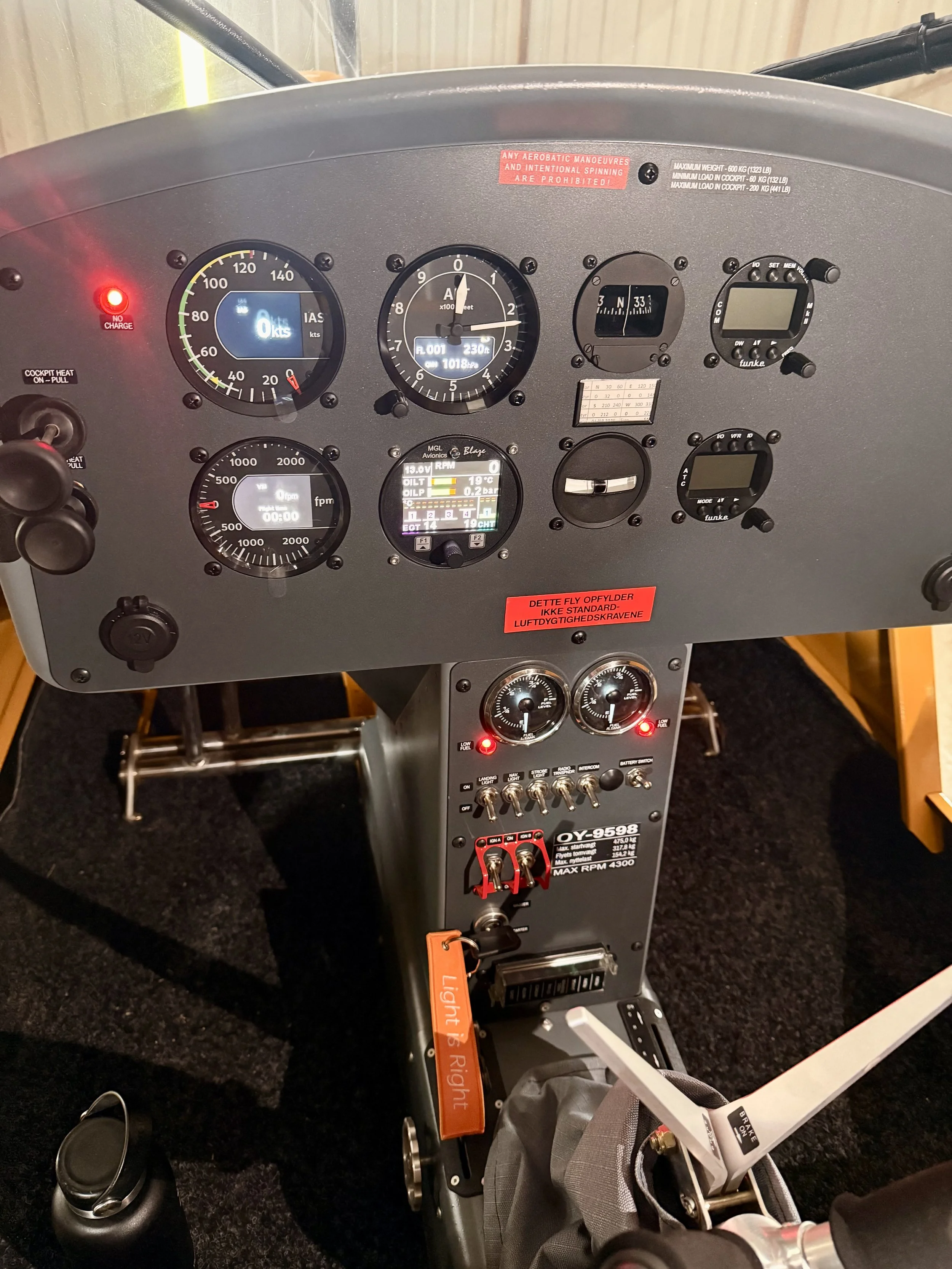 Instrumentering: OY-9598 er opgraderet med moderne Kanardia glass cockpit system